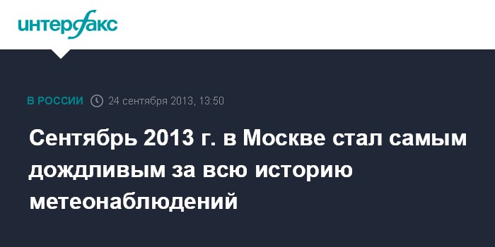 Сентябрь 2013 г. в Москве стал самым дождливым за всю историю метеонаблюдений