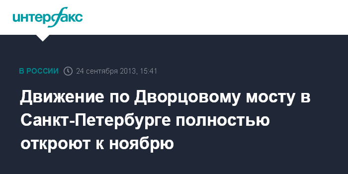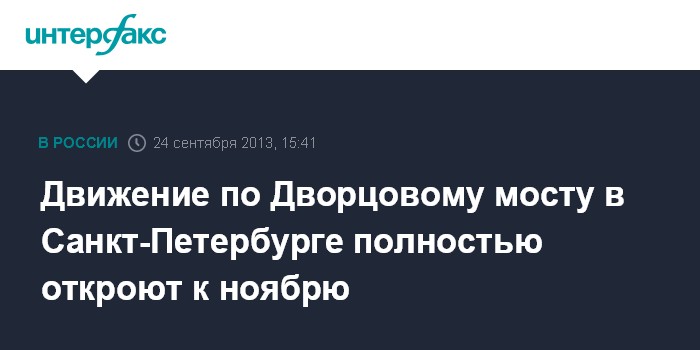 Санкт-Петербург. 24 сентября. INTERFAX.RU - Ограничения движения по Дворцовому мосту в Санкт-Петербурге могут снять уже к ноябрю, как и планировалось ранее, сообщили "Интерфаксу" в городском комитете по развитию транспортной инфраструктуры.