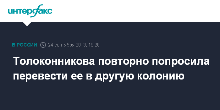 Толоконникова повторно попросила перевести ее в другую колонию