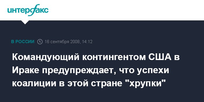 Командующий контингентом США в Ираке предупреждает, что успехи коалиции в этой стране "хрупки"