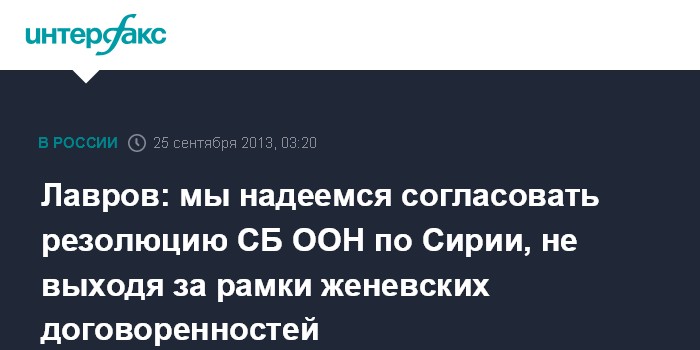 Нью-Йорк (ООН). 25 сентября. ИНТЕРФАКС - Глава МИД РФ Сергей Лавров рассчитывает, что получится согласовать резолюцию СБ ООН по Сирии, которая не будет выходить за рамки достигнутых в сентябре в Женеве договоренностей по ликвидации сирийского химоружия.