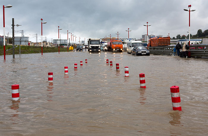 По словам Гоголевой, на участке автомобильной дороги Адлер - Сочи "нулевой километр", где в минувший вторник было зарегистрировано подтопление подмостового пространства, а уровень воды достигал отметки 2,5 метра, проводятся работы по откачке воды и расчистке подмостового пространства. По состоянию на 07:00 среды, уровень воды составляет 140 см, работы планируется завершить до 10:00 мск среды. Движение транспорта на данном участке дороги осуществляется по объездной дороге.