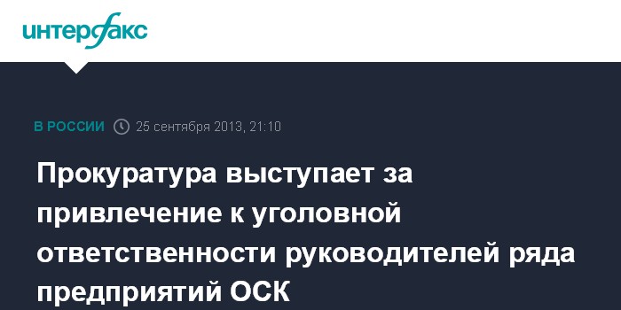Прокуратура выступает за привлечение к уголовной ответственности руководителей ряда предприятий ОСК