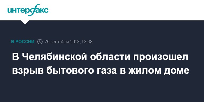 Москва. 26 сентября. INTERFAX.RU - В городе Кыштыме Челябинской области сотрудники полиции выясняют обстоятельства взрыва бытового газа в жилом доме, сообщили "Интерфаксу" в четверг в пресс-службе областного ГУ МВД России по Челябинской области. В ночь на 26 сентября в дежурную часть МО МВД России "Кыштымский" поступило сообщение от местной жительницы о том, что на 4 этаже жилого дома по ул. Станция Графитная произошел взрыв.