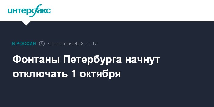 Санкт-Петербург. 26 сентября. INTERFAX.RU - Петербургские фонтаны начнут отключать на зимний период с 1 по 30 октября, сообщает пресс-служба "Водоканала" в четверг.