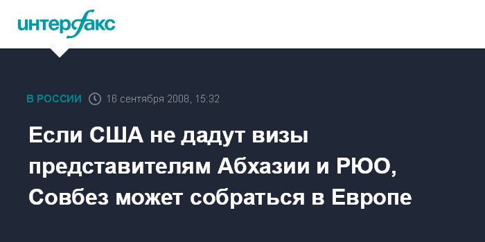Москва. 16 сентября. INTERFAX.RU - МИД России считает целесообразным проведение неформальной встречи Совбеза ООН в одной из европейских стран в случае, если США откажут в выдаче виз представителям Абхазии и Южной Осетии.