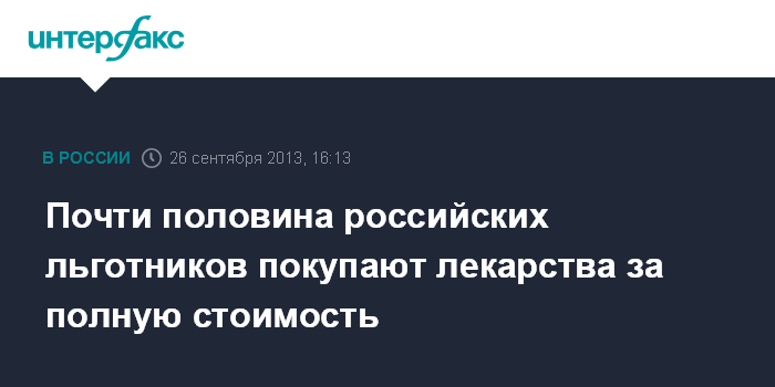 Москва. 26 сентября. INTERFAX.RU - Россияне в целом довольны ситуацией с лекарственными препаратами, однако практически половина льготников по разным причинам не может воспользоваться скидками, выяснили социологи.