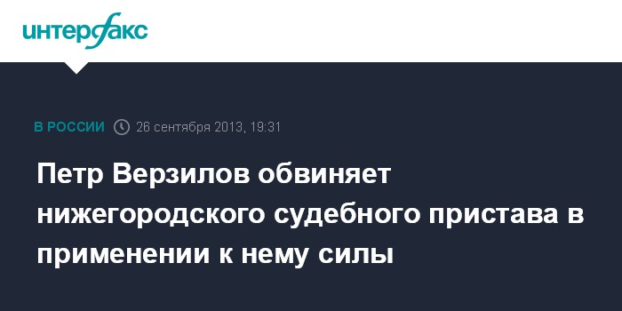 Собеседник агентства уточнил, что в данный момент он вместе с адвокатами Алехиной и в присутствии судебных приставов пишет заявление по факту инцидента. "Заявление будет подано в УФССП по Нижегородской области с просьбой привлечь пристава к ответственности за применение силы", - добавил Верзилов.