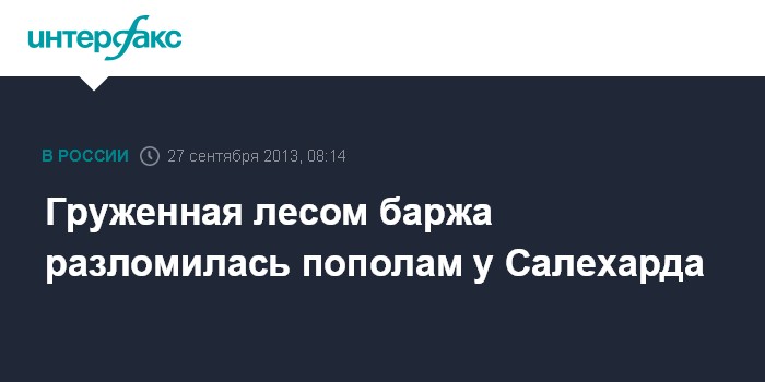Салехард. 27 сентября. INTERFAX.RU - В Ямало-Ненецком автономном округе в пятницу утром частично затонула баржа.