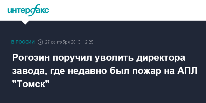 Рогозин поручил уволить директора завода, где недавно был пожар на АПЛ "Томск"