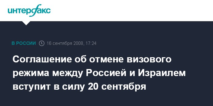 Соглашение об отмене визового режима между Россией и Израилем вступит в силу 20 сентября