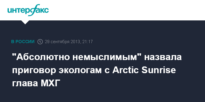 "Абсолютно немыслимым" назвала приговор экологам с Arctic Sunrise глава МХГ