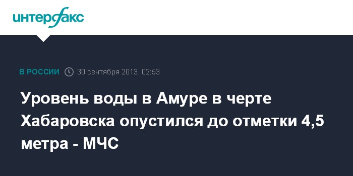 "В черте Комсомольска-на-Амуре уровень реки снизился на 23 см и составляет 708 см, у Николаевска-на-Амуре уровень воды опустился до отметки 249 см", - говорится в сообщении.