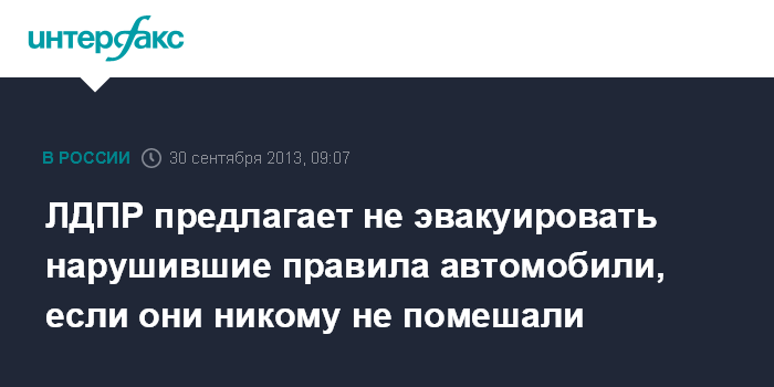 Москва. 30 сентября. INTERFAX.RU - В ЛДПР предлагают запретить отправлять автомобиль на штрафстоянку за нарушения, если он не мешает пешеходам или водителям других транспортных средств.