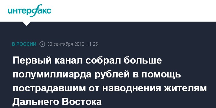 Первый канал собрал больше полумиллиарда рублей в помощь пострадавшим от наводнения жителям Дальнего Востока