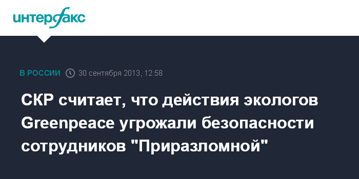 СКР считает, что действия экологов Greenpeace угрожали безопасности сотрудников "Приразломной"