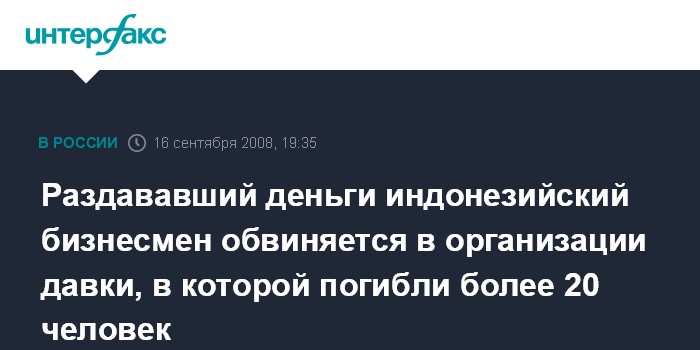 Раздававший деньги индонезийский бизнесмен обвиняется в организации давки, в которой погибли более 20 человек
