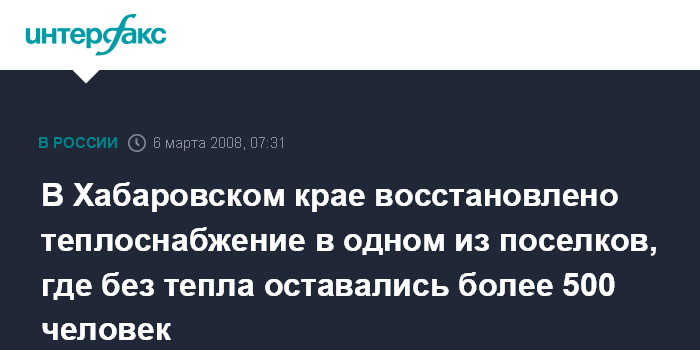 Хабаровск. 6 марта. ИНТЕРФАКС-ДАЛЬНИЙ ВОСТОК - В Хабаровском крае в поселке Амгунь, где более 500 жителей остались без тепла в результате дорожной аварии, восстановлено теплоснабжение.