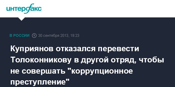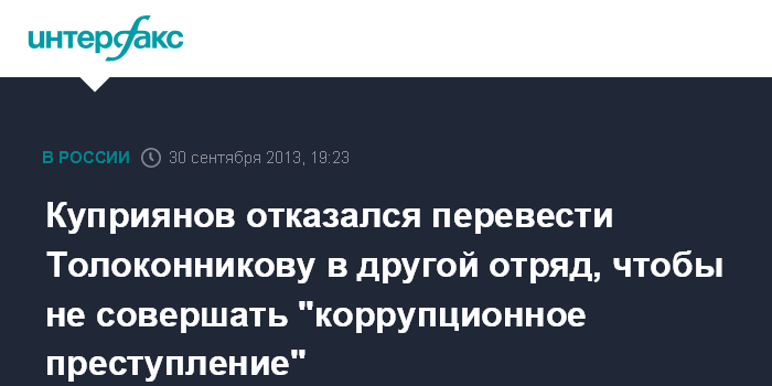 Куприянов отказался перевести Толоконникову в другой отряд, чтобы не совершать "коррупционное преступление"