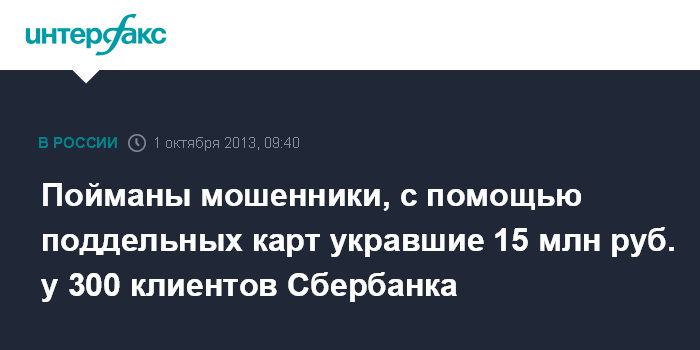Пойманы мошенники, с помощью поддельных карт укравшие 15 млн руб. у 300 клиентов Сбербанка