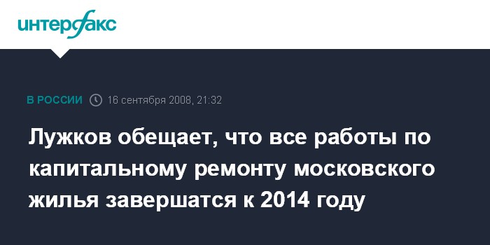 Лужков обещает, что все работы по капитальному ремонту московского жилья завершатся к 2014 году