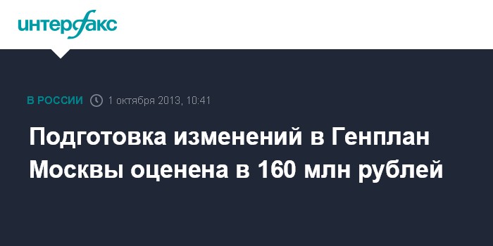 Подготовка изменений в Генплан Москвы оценена в 160 млн рублей