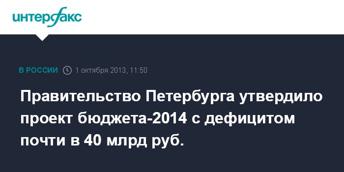 Правительство Петербурга утвердило проект бюджета-2014 с дефицитом почти в 40 млрд руб.