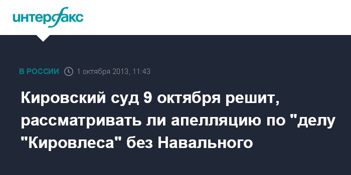 Кировский суд 9 октября решит, рассматривать ли апелляцию по "делу "Кировлеса" без Навального