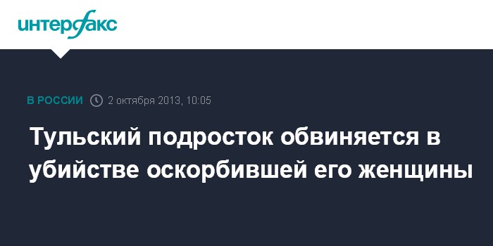 Тула. 2 октября. INTERFAX.RU - Прокуратура в Тульской области направила в суд материалы уголовного дела в отношении несовершеннолетнего жителя поселка Одоев, который обвиняется в убийстве местной жительницы за нанесенное ему оскорбление.