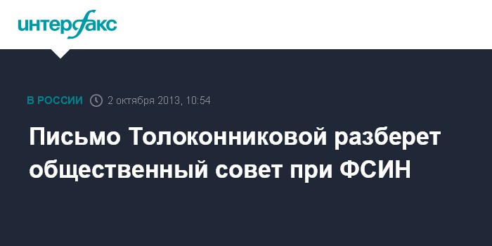 Письмо Толоконниковой разберет общественный совет при ФСИН