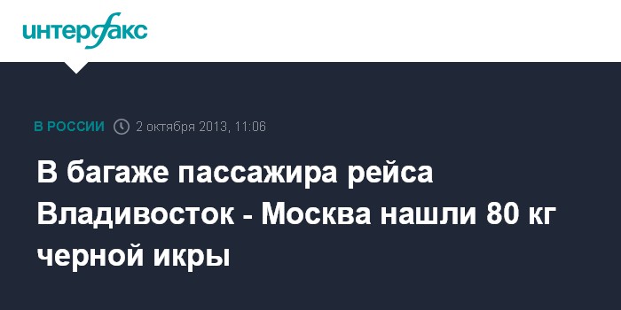 Владивосток. 2 октября. INTERFAX.RU - Сотрудник службы досмотра в аэропорту Владивостока в среду обнаружил среди багажа рейса в Москву партию нелегальной черной икры весом 80 кг.