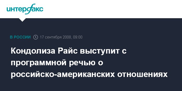 Кондолиза Райс выступит с программной речью о российско-американских отношениях