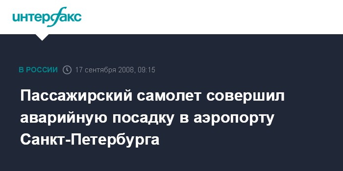 Санкт-Петербург. 17 сентября. INTERFAX.RU - В Петербургском аэропорту "Пулково" вчера вечером совершил аварийную посадку самолет "Ту-154", сообщили "Интерфаксу" в главном управлении МЧС по городу.
