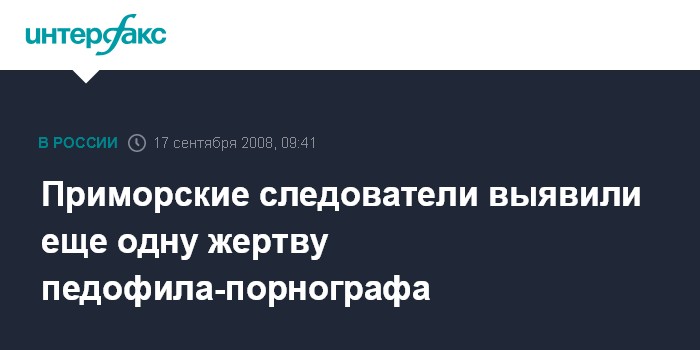 Владивосток. 17 сентября. INTERFAX.RU - Следственные органы приморского города Артема установили еще одну девочку, которая подверглась сексуальному насилию со стороны 50-летнего жителя города, арестованного ранее за аналогичное преступление.