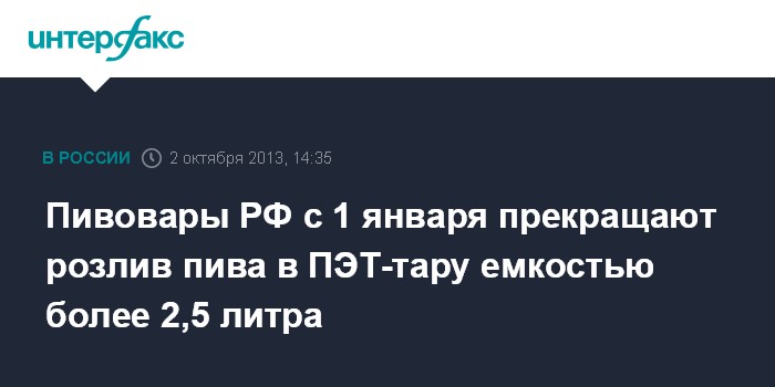 Пивовары РФ с 1 января прекращают розлив пива в ПЭТ-тару емкостью более 2,5 литра