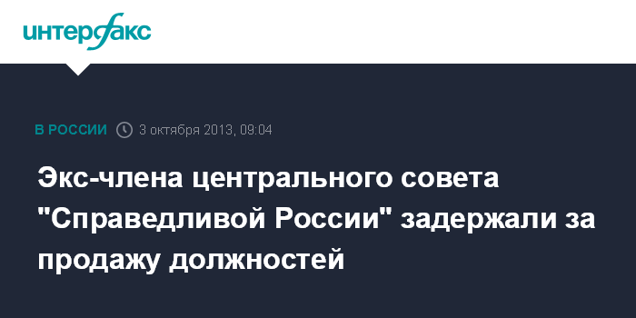 Москва. 3 октября. INTERFAX.RU - Бывший член центрального совета "Справедливой России", возглавлявший отдел по работе с ее сторонниками, задержан в составе преступной группы, предлагавшей услуги по продвижению на любые руководящие должности в субъектах РФ, сообщили "Интерфаксу" в пресс-центре МВД России.