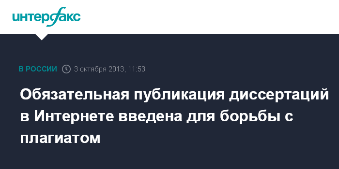 Обязательная публикация диссертаций в Интернете введена для борьбы с плагиатом