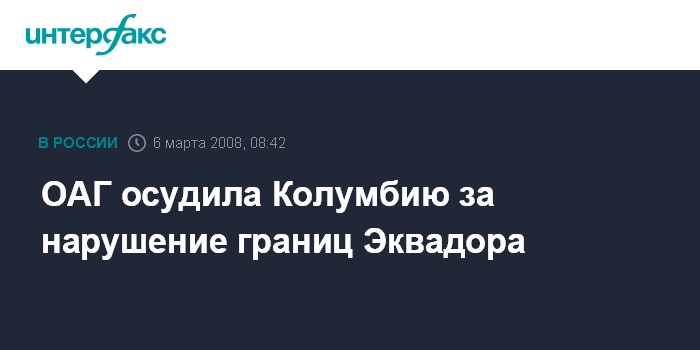 Вашингтон. 6 марта. INTERFAX.RU - Организации американских государств (ОАГ) на экстренной сессии приняла резолюцию с осуждением нападения колумбийских военных на лагерь повстанцев на территории Эквадора, сообщает в четверг телекомпания Си-Эн-Эн.