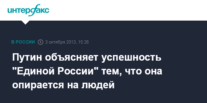 Путин объясняет успешность "Единой России" тем, что она опирается на людей