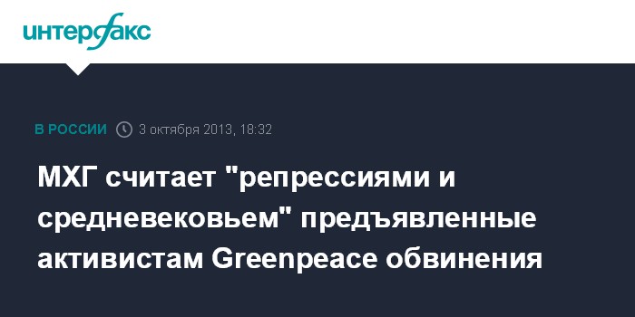 МХГ считает "репрессиями и средневековьем" предъявленные активистам Greenpeace обвинения