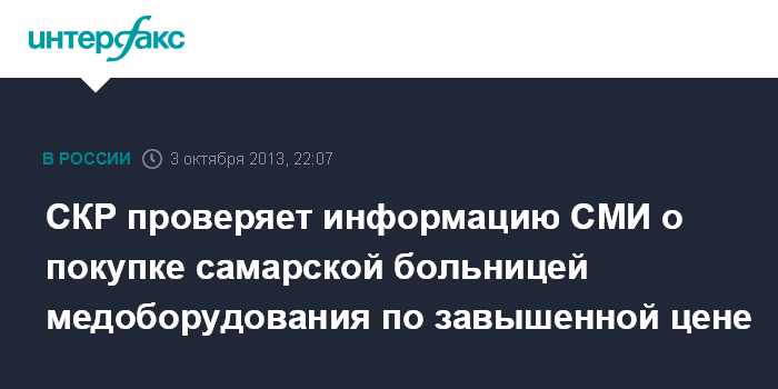 Москва. 3 октября. INTERFAX.RU - Самарское управление следственного комитета РФ проверяет информацию, которая появилась в некоторых СМИ о нарушениях при закупке и поставке оборудования для онкологической больницы, сообщает в четверг вечером сайт Следственного комитета.
