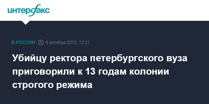 Убийцу ректора петербургского вуза приговорили к 13 годам колонии строгого режима
