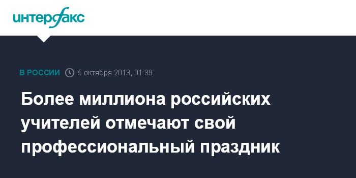 Москва. 5 октября. ИНТЕРФАКС - В России и в более чем 100 странах мира в субботу отмечается профессиональный праздник работников сферы образования - День учителя.