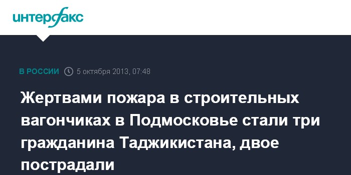 Жертвами пожара в строительных вагончиках в Подмосковье стали три гражданина Таджикистана, двое пострадали