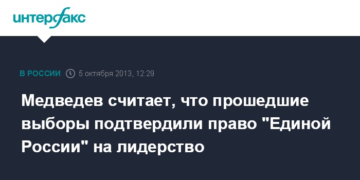 Москва. 5 октября. INTERFAX.RU - Результаты прошедших выборов подтверждают лидерство "Единой России", несмотря на рекордное количество политических конкурентов, заявил премьер-министр РФ, лидер партии Дмитрий Медведев.