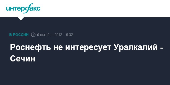 Москва. 5 октября. INTERFAX.RU - Нефтяная компания "Роснефть" не ведет и не собирается вести переговоры о приобретении пакета акций производителя минеральных удобрений ОАО "Уралкалий", заявил президент компании Игорь Сечин журналистам в субботу. "Нас интересует нефть, газ и нефтехимия. Удобрения нас не интересуют. Мы не ведем переговоры ни о покупке пакета Керимова (Сулейман Керимов, акционер "Уралкалия"), ни о покупке каких-то других пакетов", - сказал он.