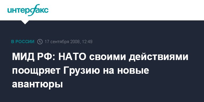 Москва. 17 сентября. INTERFAX.RU - В Москве рассматривают как поощрение Тбилиси "на новые авантюры" итоги выездного заседания Совета НАТО в Грузии.