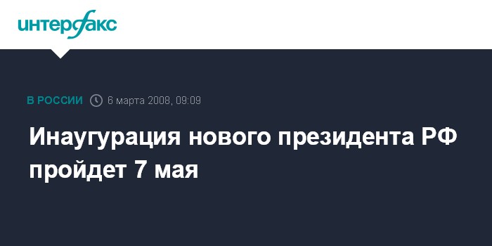 Москва. 6 марта. INTERFAX.RU - Председатель ЦИК Владимир Чуров подтвердил, что в соответствии с российским законодательством, инаугурация президента, избранного на выборах 2 марта, состоится 7 мая.