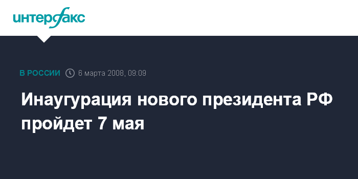 "Президент Российской Федерации вступает в должность по истечении четырех лет со дня вступления в должность президента РФ, избранного на предыдущих выборах. Отсюда и определенный законом срок - 7 мая", - сообщил В.Чуров в среду в прямом эфире программы "Команда "Ч" радиостанции "Русская служба новостей".