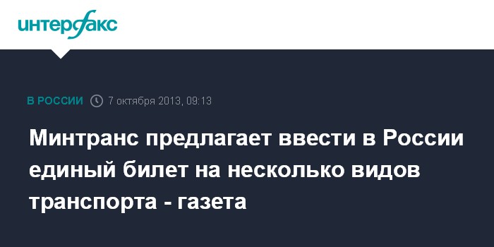 "Согласно подготовленному Минтрансом проекту закона "О прямых смешанных (комбинированных) перевозках", единый билет может применяться при сочетании всех видов транспорта: авиационного, железнодорожного, автомобильного, морского, речного", - уточняет издание.